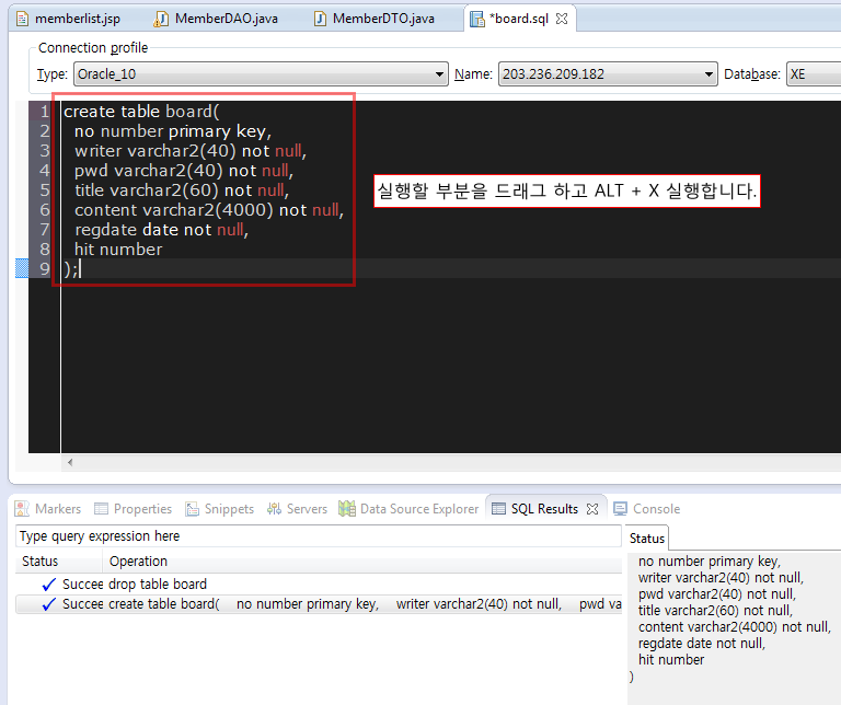 [ 설 명 ] success ! 뜨면 연결이 성공한화면입니다. OK 클릭합니다.